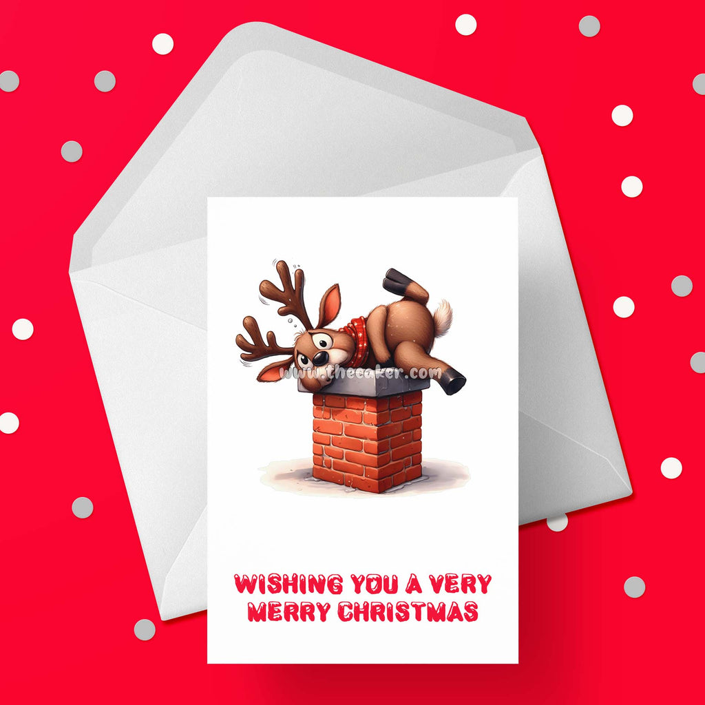 Christmas Card 43 - Funny Rudolph stuck in chimney