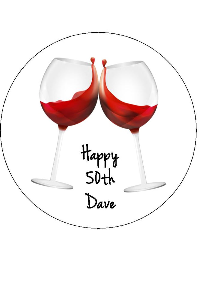 Red Wine Glasses Edible Icing Cake Topper